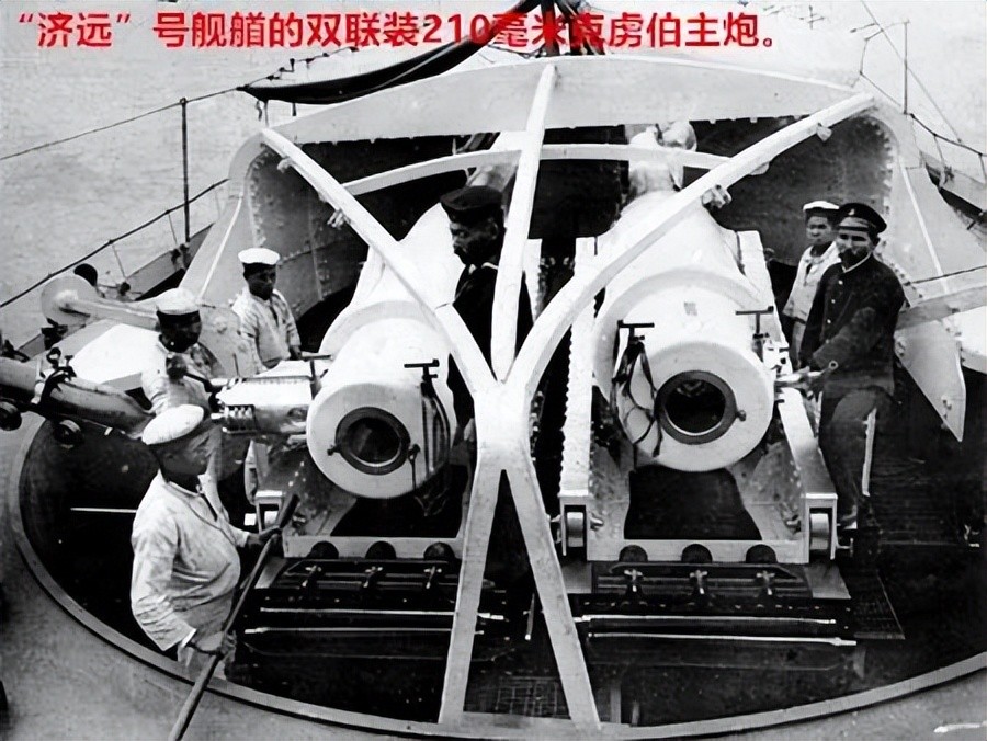 抛开在舰队决战中作用不大的47毫米炮不说,“吉野”号上的12门舰炮全部采用当时阿姆斯特朗公司最新式的“制退复进机”,可在击发后立刻炮管复位并开始下一发装填,在熟练炮手的操作下能达到每分钟5~7发的射速!而作为对比,北洋水师“致远”号巡洋舰上以“前二后一”的方式布置了3门210毫米克虏伯火炮和两弦各一门150毫米副炮,相对于2300吨的排水量似乎更显孔武有力;但落后的“门桥式炮架”每次射击后火炮和炮架都会整体后座,需要费时费力的重新复位与瞄准,其中210毫米炮的再装填时间不少于三分半、弹药较轻的150毫米炮最快也只能每分钟发射一次。