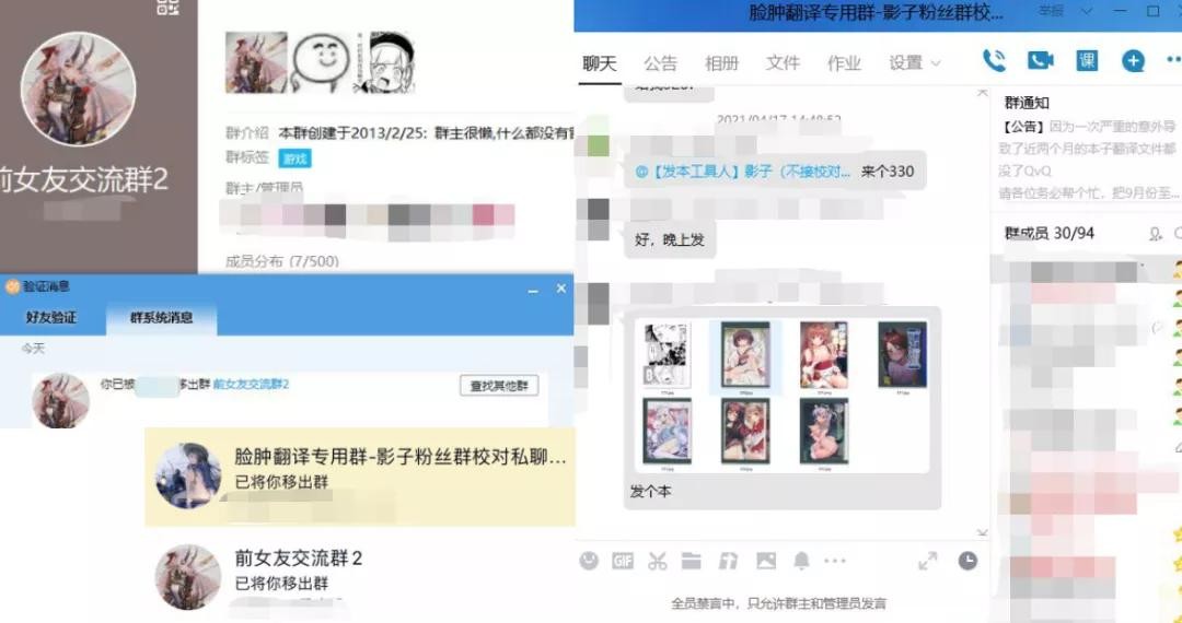 先是有人爆料自己被移出了脸肿汉化组的内部群,90人大群禁言之后并解散。