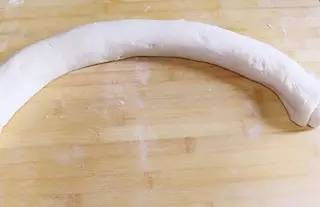 4、从下到上或者从上到下卷起来,按扁,用刀切成均匀的小段。
