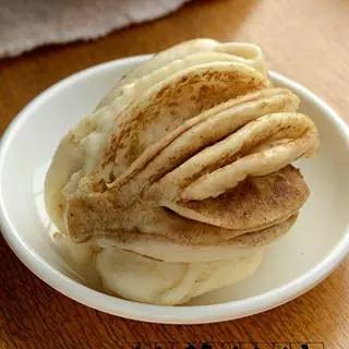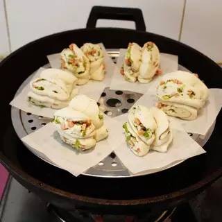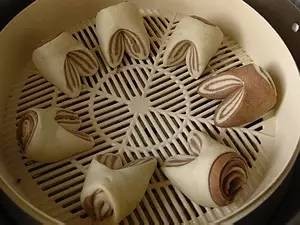以下这种做法是用胡麻油煎制而成,胡麻油本身有一种特殊的香味,常食对人身体极其有好处。另外,由于煎制而成,花卷不仅松软适口底部更是焦黄脆香,别有一番风味。