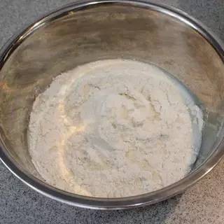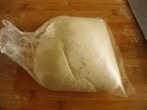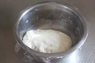1、发酵粉加温水静置5分钟后与面粉混合,揉成光滑的面团,温暖处发酵至两倍大,放温暖处发酵至两倍大。也可放进冰箱一夜发酵。