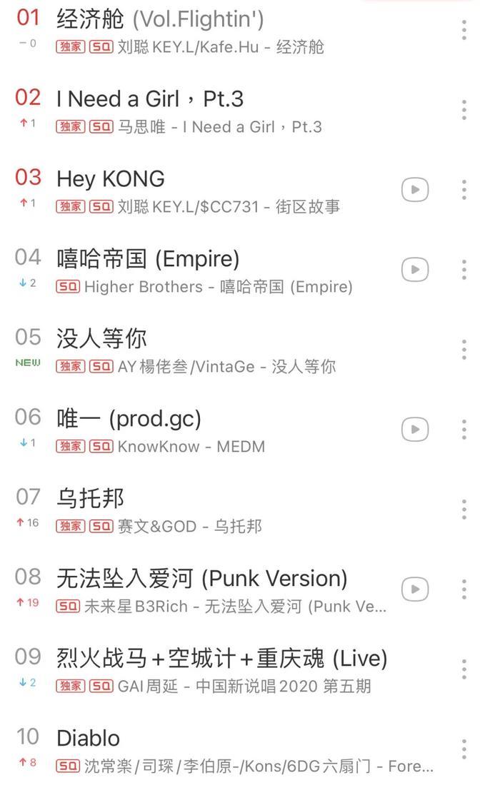 今天偶然打开网易云的「云音乐说唱榜」,看到上榜的曲目基本是说唱圈的主流Rapper。