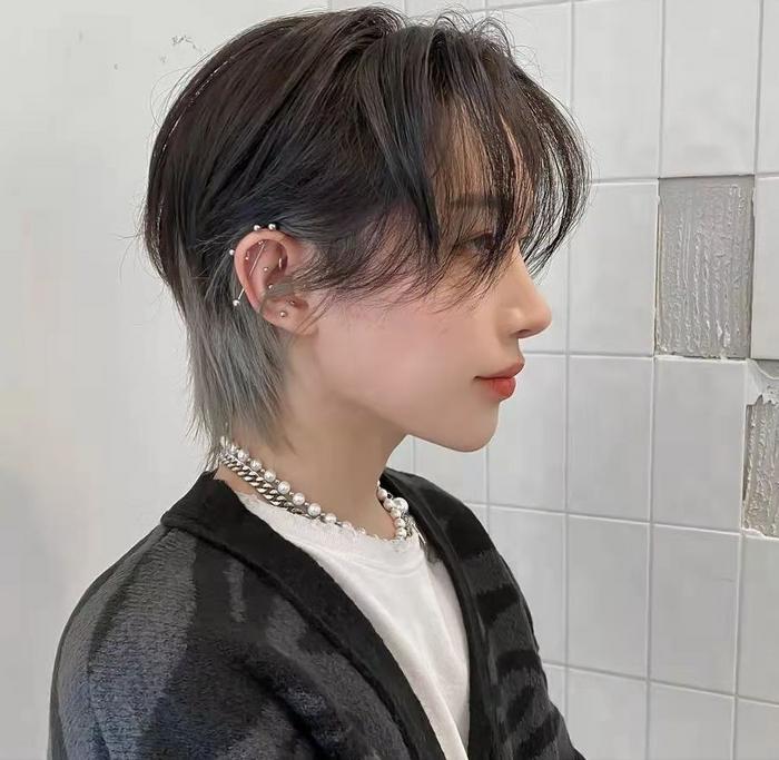 这种发型属于男女通用的中性化发型,特别适合脖子细长,又喜欢个性化发型的女生。一般人剪这种发型,要么保留自然黑色,要么整体染出一个统一的发色,看起来千篇一律。而针对小狼尾的发尾,染出奶奶灰的发色,瞬间让这种发型变得与众不同起来。