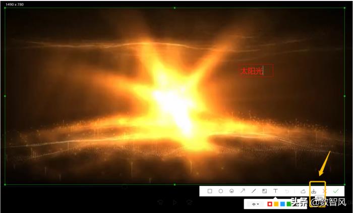 ②、框选住整个照片,如果框得不准,四周有八个把手可以调整大小到合适位置。调整到位后点击截图工具中的“T”文字工具