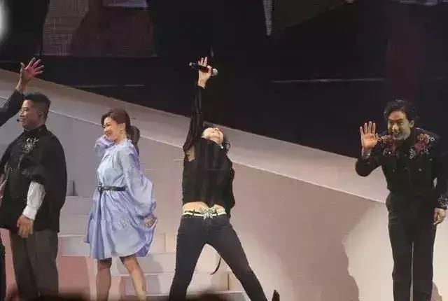 本来原本不登台的叶倩文最后也忍不住上去献歌,劲歌热舞之中,把衣服都扯破了。