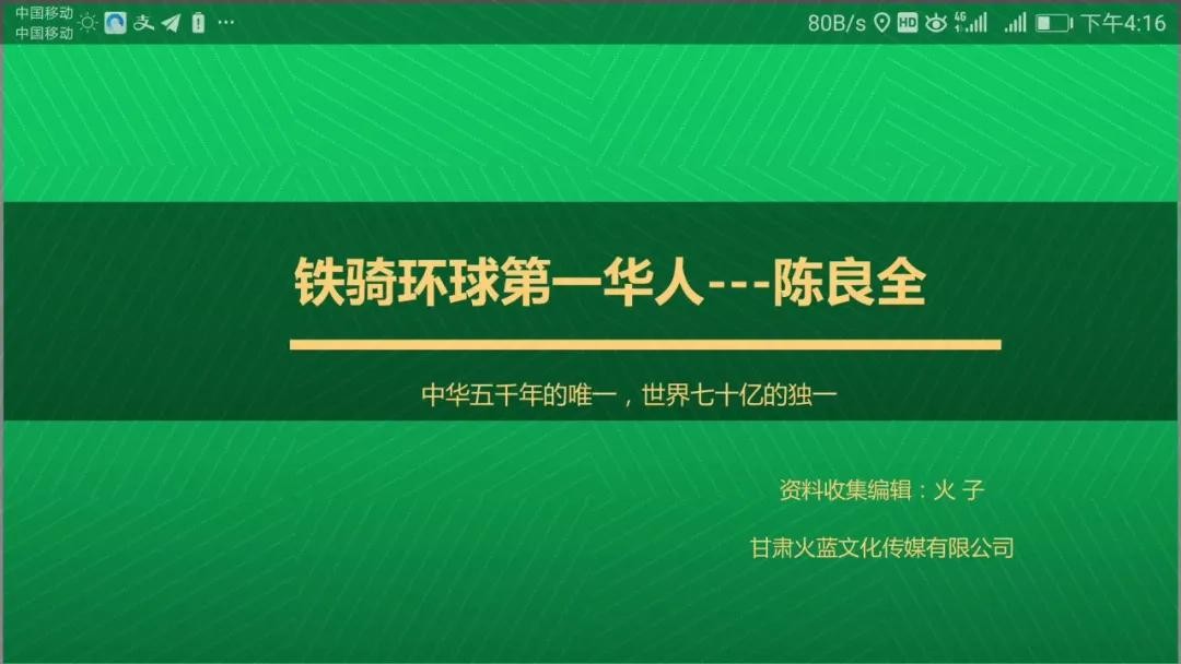 1962年出生安徽省宣城市一个小山村,1986年开始单骑自行车周游中国,十三年半跑遍了中国(除台湾)所有的337个地,市,州,盟。2003年作为苏州红十字会的人道和平使者,开始单骑摩托车周游世界宣传和平,目前走完112个国家(铁骑环球第一华人,摩托车环球世界第一人,地球英雄)。上过三十个大型访谈栏目,包括《鲁豫有约》(凤凰卫视),《相约》(央七),《我的一本课外书》(央十),《华人世界》(央4),《非常了得》(江苏卫视郭德纲孟非)《北京客》(北京卫视),《天下安微人》(安微卫视),《天下农民工》(贵州卫视)等,一千多家海内外媒体报道过,获得过“人道博爱奉献奖”“杰出华人贡献奖”“公益名人奖”“第一英雄奖”“志愿者水晶奖”等,创作了175首诗(词)95首歌,出过二本书《陈良全单骑走世界》(国内篇,国外篇),在包括66所大学及大企业做过203场报告会,包括北京大学,中国人民大学,北京语言文化大学,中央财经大学,山东大学,哈工大,苏大,华为,中铁,路桥,安利,人保等,现在疫情不能出国,在北京写《陈良全单骑走世界》(诗歌故事篇)并参加“中国诗歌大赛”。