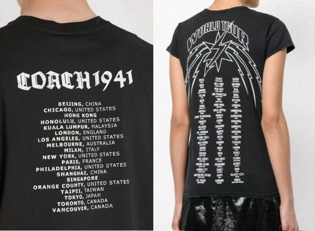 据网友爆料,奢侈品牌Coach蔻驰在此前的一款印有城市和国家名称的T恤上,在北京和上海后面印有中国字样,却将中国香港和中国澳门单独列出,与中国分割开来;甚至还在台北之后应该印上国家的位置,还斜着台湾字样,与中国并列,被质疑损害中国国家主权和领土完整。
