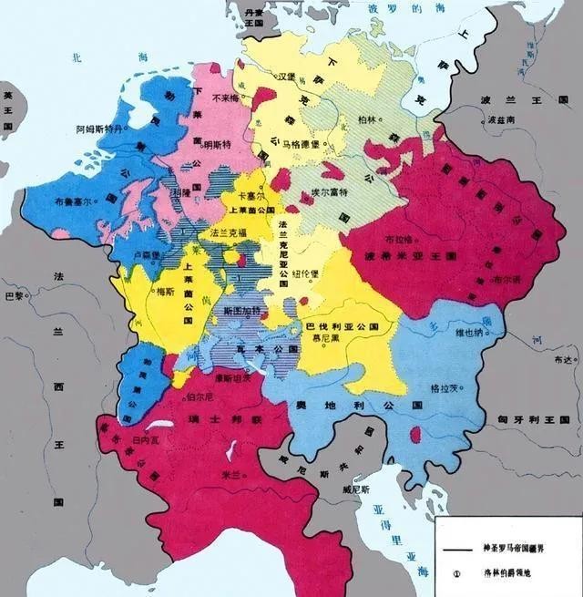 在19世纪中期,一个在中部德意志乘火车旅行的人,常会发现,每隔一两个钟头,士兵的制服和铁道栅栏上的条纹颜色就会改变,实际上他已从一个小邦进入另外一个国度。