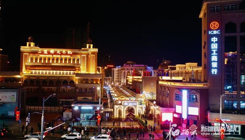2021年12月4日,夜幕下的新疆国际大巴扎景区灯火通明。闫鹏摄