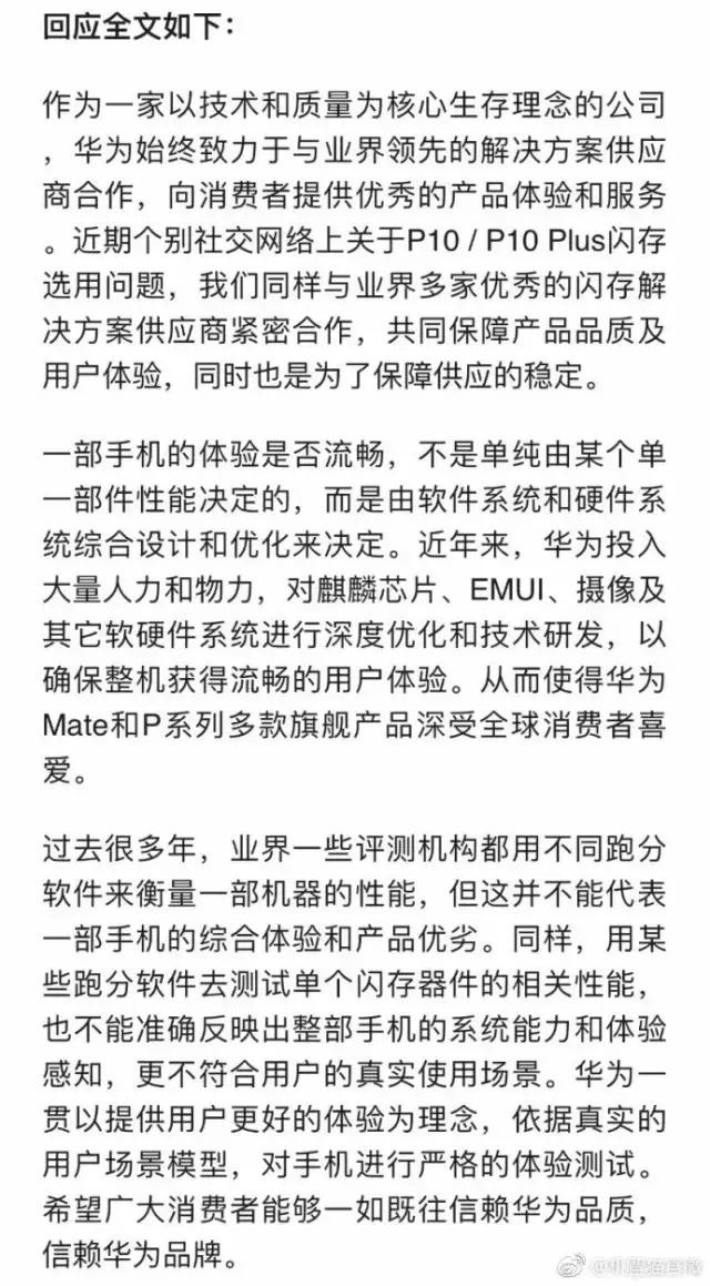 就在18日早间,华为终端针对闪存事件作出回应。在这份回应中,华为终端称,一部手机的体验是否流畅,不是单纯由某个单一部件性能决定的,而是硬件综合设计和优化的结果。
