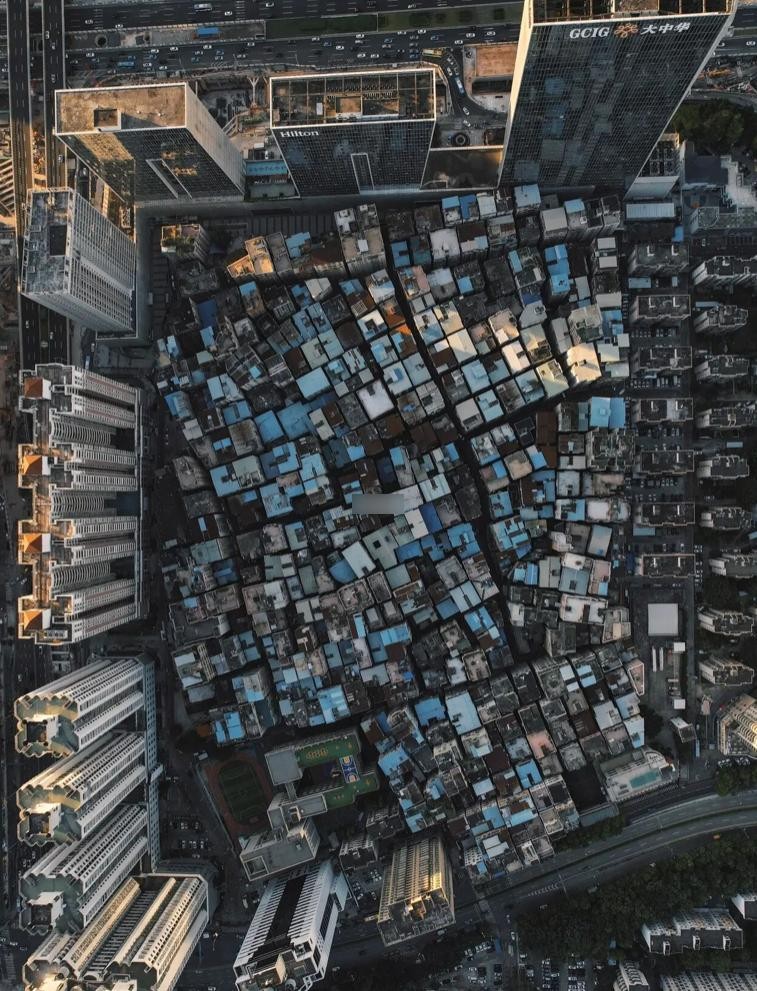 一个字面意义上的「城中村」,已经被周边高楼包围,一到下午就会进入阴影之中。满是压抑和辛酸。