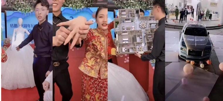 当年在两人纪念日时,男方就为女方送上了四份大礼。第一份是价值30万的钻戒;第二份是50万的定制婚纱;第三份是男方在老家购置的300平方米的房产;第四份是价值700万的定制款劳斯莱斯。
