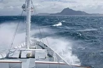 德雷克海峡位于南美大陆和南极洲之前,大平洋和大西洋的洋流交汇的地方,再加上极地气候的影响,非常寒冷,风高浪大,号称航海家的墓地,历史上沉过上千条船,即使到了科技很发达的今天,航空母舰编队也大敢从这儿走。