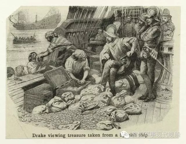 这时候的德雷克,已经不是那种杀人如麻的低级海盗,他给每个投降的人发了钱和礼物,拿人家的私人物品,会给补偿,呵呵,这也就是装装样子,谁敢还价呀,不过他们确实没有把人家都杀了,这西班牙人有记载。这么多钱,他们搬了5天才搬完。