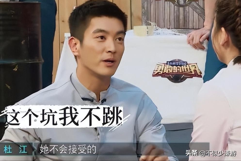 在杜江婉拒后,吴映洁还是嘟着嘴靠了上去,吓得杜江一边后退一边直呼:“你不用离我这么近”。