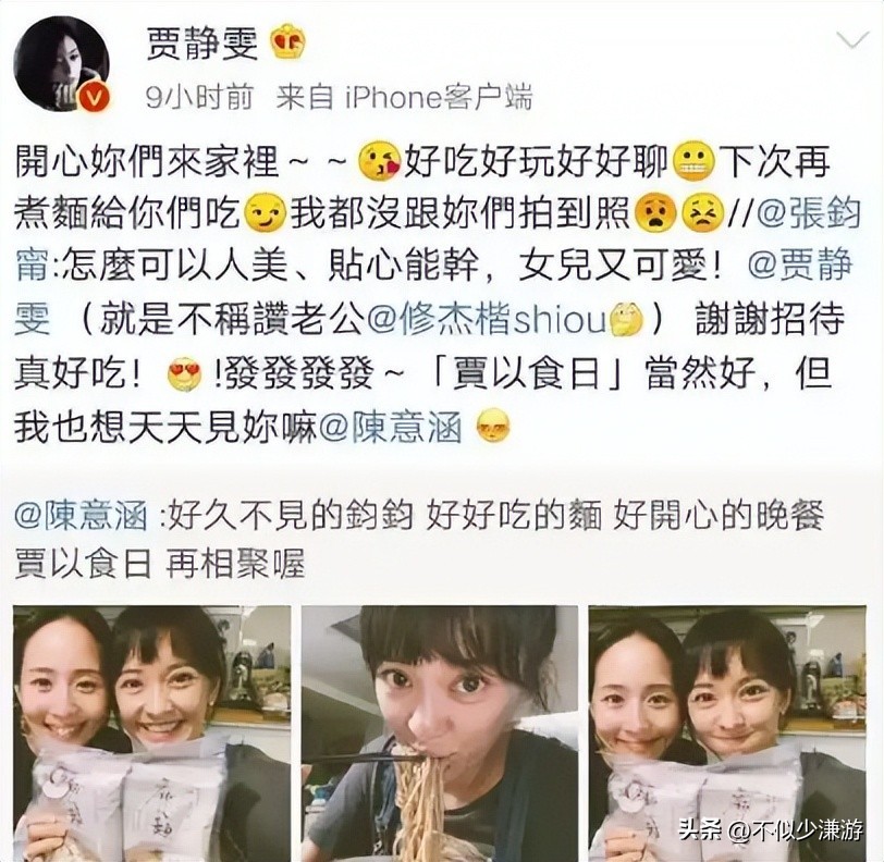 最为引人争议的,是她跟好友贾静雯的丈夫修楷杰的相处方式。