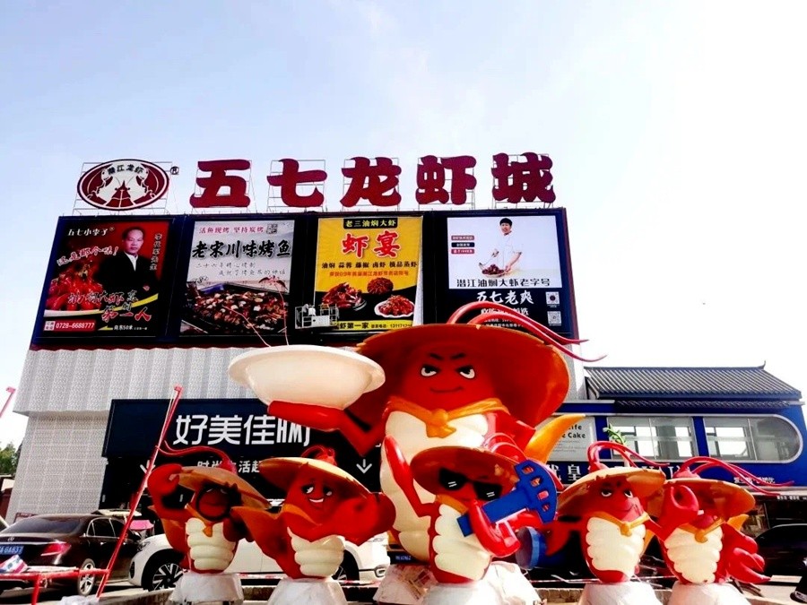 五七龙虾城不仅是潜江油焖大虾的发源地,也是集特色餐饮、文化展示、网红打卡、电商孵化、休闲娱乐为一体的多功能街区。一走进这里,香气四溢的油焖大虾就让人垂涎三尺,每一口都是对味蕾的极致诱惑。