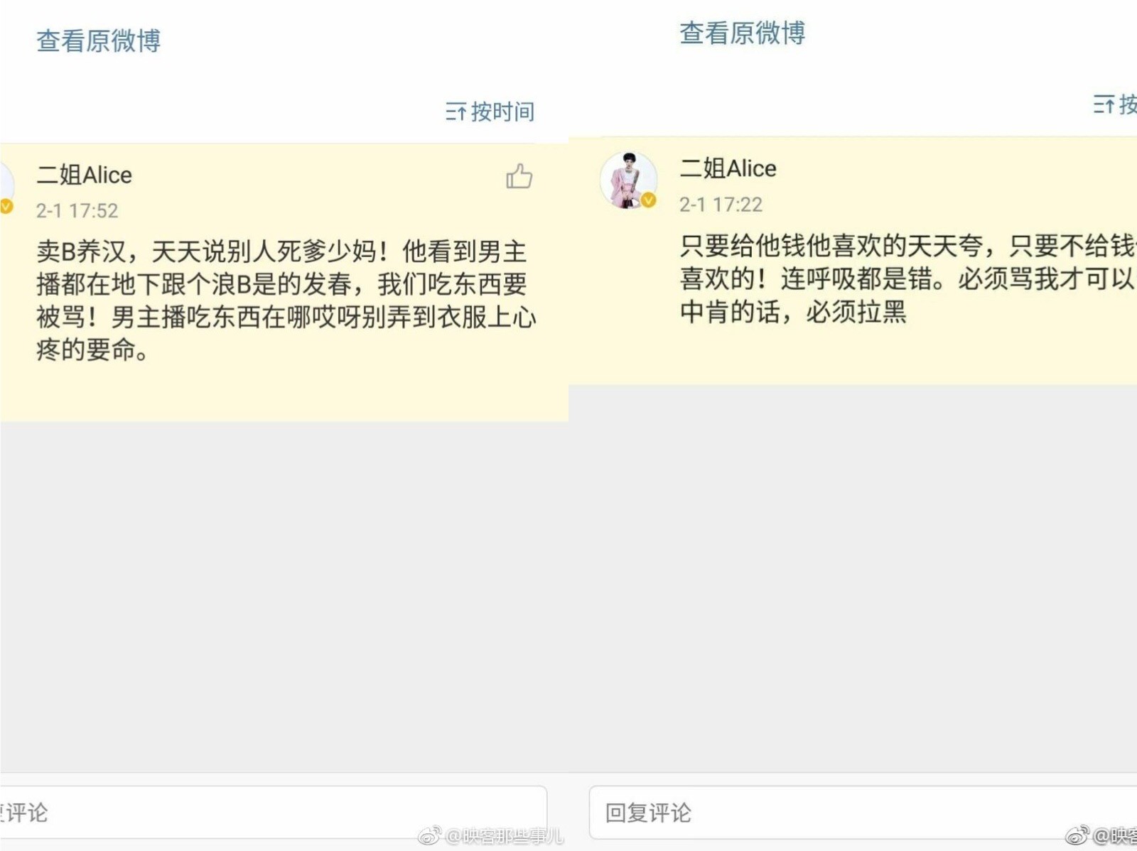 说起两人的“缘分”还要追溯到去年,当时“映客那些事儿”的微博账号随着映客的迅猛发展应运而生。既然是八卦号,谈论的对象自然也离不开平台头部主播了,“二姐”因此也频繁的出现在“映客那些事儿”的微博里,只是评论并不算正面。两人也互相在对方微博下留言互怼过。