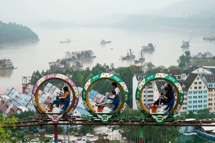 与美心红酒小镇相邻的梨香溪西岸鸡公山,分山上游乐和水上游乐两部分,山上游乐有双层豪华转马、自控飞机、海盗船等游乐设施,水上游乐有水中步行球、水上自行车、快艇、水上婚礼项目。