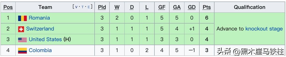 1994年美国世界杯A组积分榜