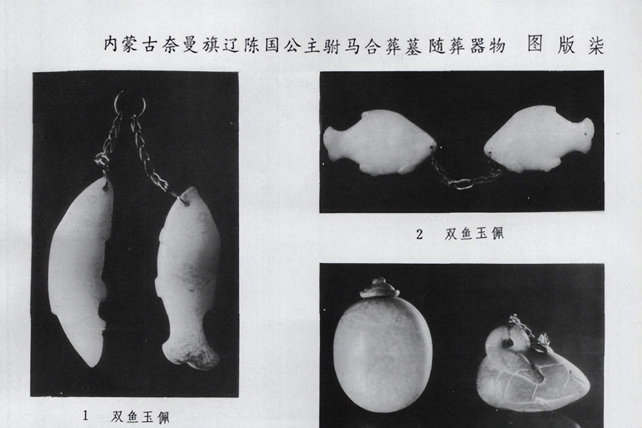其实,回到上文论坛中讨论的“双鱼玉佩”,真实的双鱼玉佩,出土在内蒙古通辽的一座辽代墓葬的随葬品。