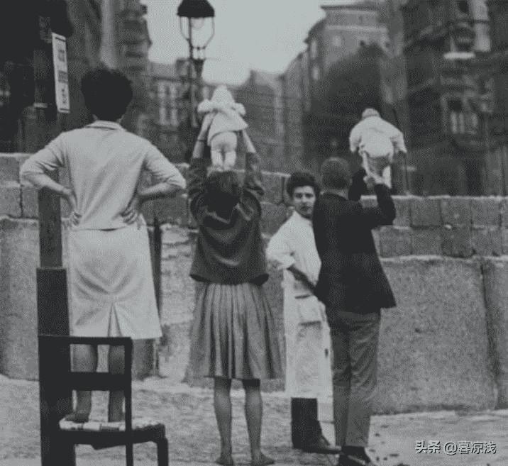 1961 年,西柏林居民向居住在东柏林的祖父母展示他们的孩子。