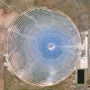 西班牙塞维利亚的格马索尔热太阳能发电厂,一共有2650个定日镜,每块都有120平方米大小,围绕中心塔组成了一个480英亩(约194万平方米)的巨大圆形。