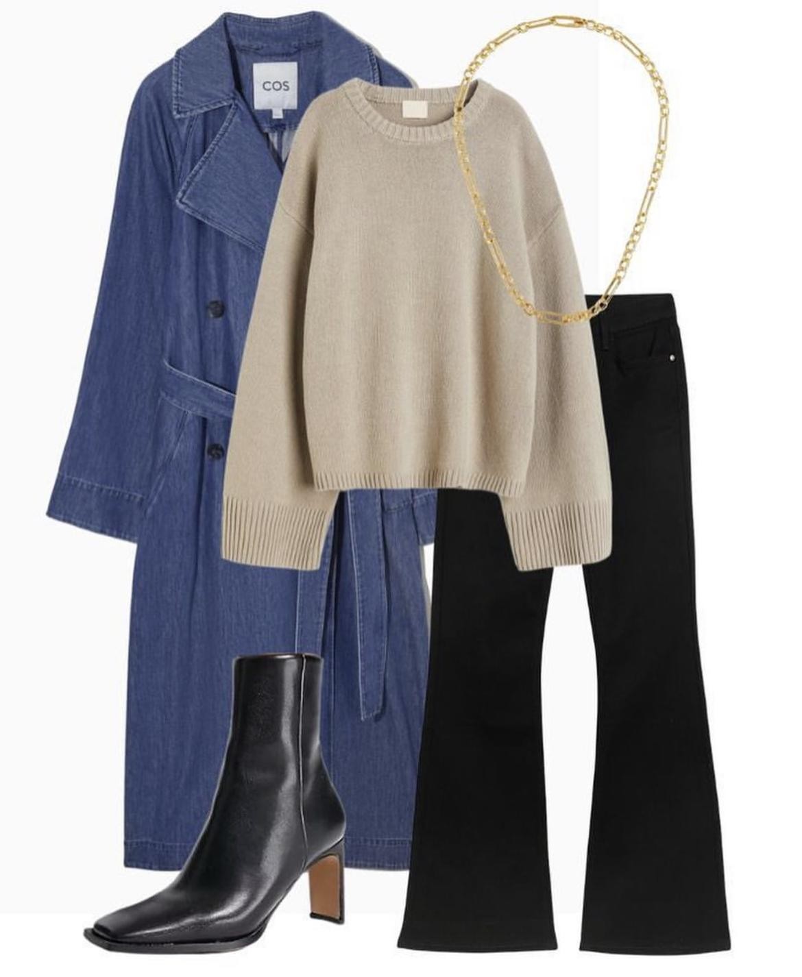 先值得入手的,其实是牛仔风衣,因为风衣的款式本来就很经典,比较好搭配,而且也能穿出很修长大气的感觉。可以直接用基础款毛衫和喇叭裤,就能跟牛仔长风衣搭得很时髦。