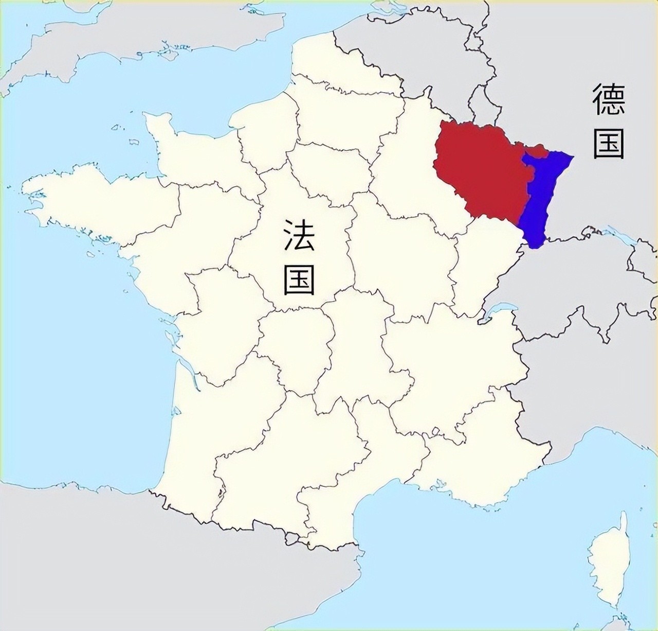 为了便于控制,法国将阿尔萨斯洛林拆分,阿尔萨斯分成了下莱茵省和上莱茵省,洛林分成了默兹、孚日等四个省。