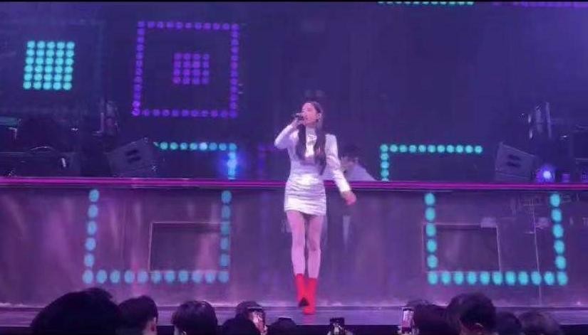 但此次舞台布置着实有些尴尬,潘南奎表演的高台紧挨着粉丝,正正好高出一个人的高度。一众男粉也一拥而上拥簇在其脚边观赏,但是这个角度不免让人尴尬不已,毕竟一抬头就能看见潘南奎的裙底。