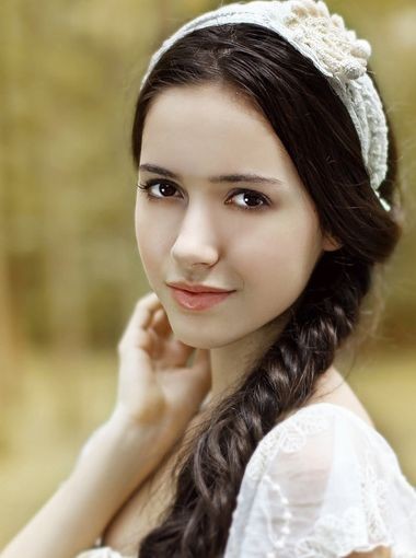 这款带有迷人光泽的柔顺发丝拢放在肩的一侧,蓬松饱满的发丝衬托出白皙红润的肤色,从一侧开始编发在发量多的一侧编织成清新的麻花辫,整个发型带有时尚优雅的清新淑女气质。