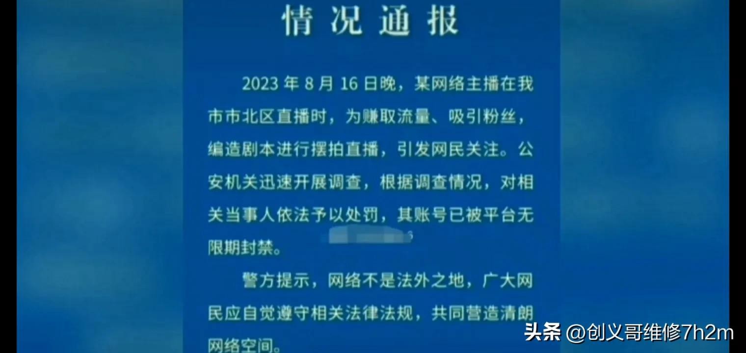 8月18日,青岛市公安发布通告,网络主播在青岛市市北区直播,为了赚取流量和吸引粉丝,自导自演被青岛大哥绑架殴打,并被挖坑活埋的恶劣剧情引发网友关注,根据调查情况,对相关当事人依法依规处罚,其帐号巳被平台无限期封禁。