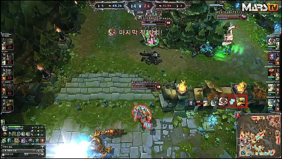 然后等到直播画面变成比赛画面时,WE仅仅领先KT.A不到3k经济,WE中路也被KT.A击破。