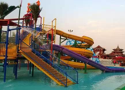 蜿蜒的漂流河环绕整个水世界,游客乘坐浮圈沿途观赏水景,十分清爽、惬意。每隔4分钟就有数十余吨水从高空奔流而下,人们聚在一起逐浪漂流,听到的除了波涛声就是尖叫声。由水城、水迷宫、亲子滑道及嬉水区四大部分组成的欢乐水寨更成为了情侣和家庭的乐园。高低不同的水滑梯组成了一道道绚丽彩虹,各种戏水小品又让这里变成童话的世界。