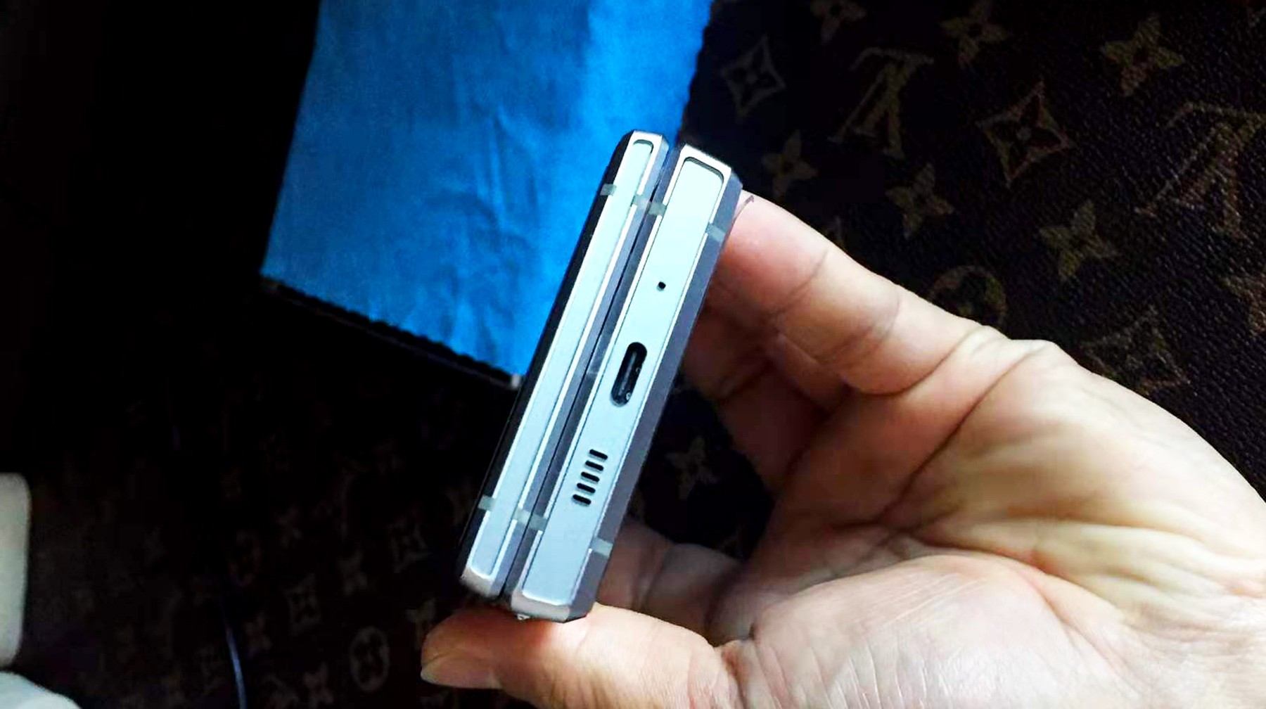 小编这次在二手市场拿到了一款三星w2019真机,它发布于2018年年末,距今已有三四年,但整体成色保养得很好。撇开复杂且深邃的包装盒,单看手机外形,属于那种非常高级的厚重感,特别是银色边框和黑色机身的融合度非常好,细腻且精致。再看手机正反面,除了外屏和电池后盖,细节处的电源键严丝合缝,没有一点晃动的松垮感(这还是用过几年的结果)。因为手机正面是一大块贴合屏,熄屏状态下与黑色的后盖几乎一样,没有辨识的着落点,这就让机器的外观亮点自动转移到了手机转轴处一小块留白区域,正反面都有,边角还有类似螺丝的纹理,辨识度超高。