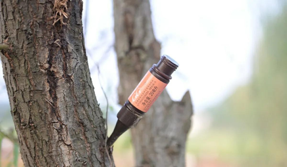 6.输液防治或者插瓶树体注射法: 使用配置好药剂(菊酯类、烟碱类等)的吊瓶或者插瓶应用输液的方式,通过具有内吸、熏蒸、触杀、胃毒等药剂的功效,强力渗透于植物组织中,特效防治天牛等蛀干害虫。