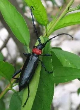 天牛是多食亚目天牛科昆虫的总称,咀嚼式口器,天牛是植食性昆虫,会危害木本植物,大部分松、柏、柳、榆、核桃、柑橘、苹果、桃和茶等,一部分棉、麦、玉米、高粱、甘蔗和麻等,少数木材、建筑、房屋和家具等,是林业生产、作物栽培和建筑木材上的主要害虫。天牛中数量最多、最常见的除星天牛和桑天牛外,还有光肩星天牛、桃红颈天牛、白筋天牛、红缘天牛、云斑白条天牛、竹缘虎天牛、深山天牛等。