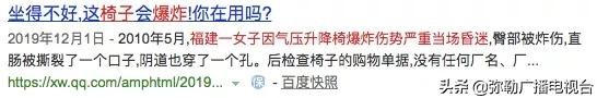 2010年5月,福建一女子因气压升降椅爆炸伤势严重当场昏迷,臀部被炸伤,直肠被撕裂了一个口子,阴道也穿了一个孔。后检查椅子的购物单据,没有任何厂名、厂址、电话之类信息。
