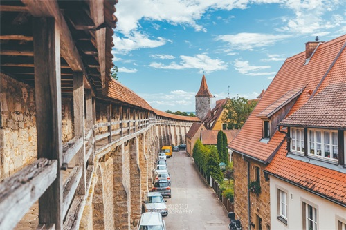 罗腾堡城墙也是保存完好的中世纪城墙,环抱着罗腾堡全城,可以沿着长长的木质廊桥绕城大半周,城墙原为军事防御修建,而如今,早已用作了观赏的步道。站在城墙上,整个罗腾堡便尽收眼底了。