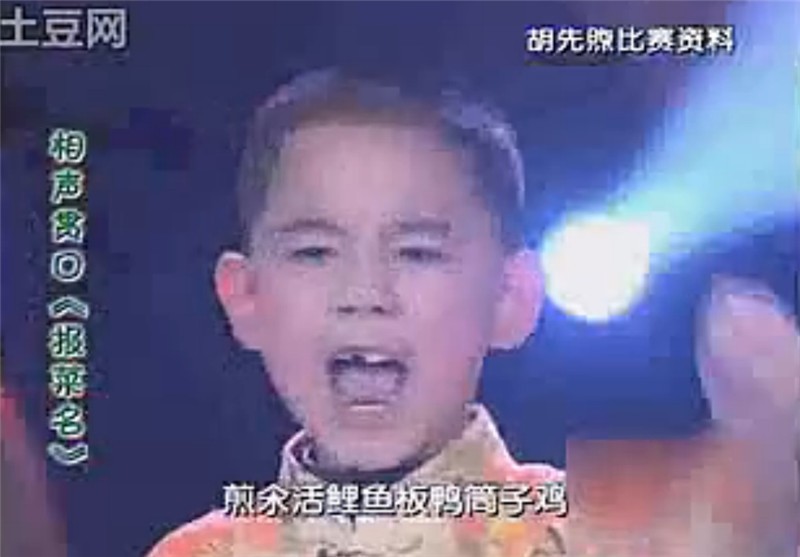 在上边的这个童星比赛片段里我们能看到,胡先煦表演的《报菜名》引得满堂喝彩。