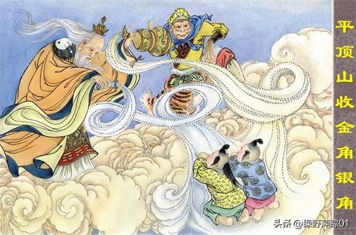其二,石猴出世的故事解化自女娲炼石补天神话。花果山顶上的巨石合周天之数,按九宫八卦之势,是太上老君的八卦炉。石猴出世后,八卦炉移至天庭,这里就是平顶山,老君的两个司炉童子金角、银角大王拿着老君司炉工具炼孙悟空。银角大王告诉弼马温,那只葫芦是“解化女娲之名,炼石补天”时,在昆仑山的仙藤上得到的紫金红葫芦。