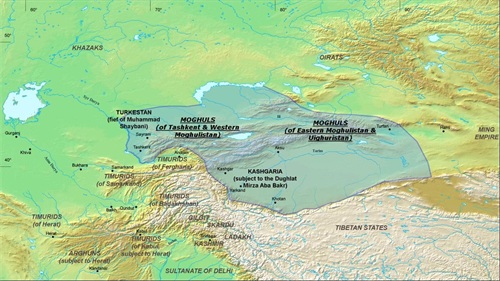 16世纪初,印度莫卧儿帝国的缔造者,蒙古后裔巴布尔派亲表兄弟萨亦德率大军4700余人北征,占领了喀什噶尔、和田、叶尔羌等地,并建立起叶尔羌汗国。此时,楚河上游、伊犁河上游、伊塞克湖等地域的吉尔吉斯人成为叶尔羌汗国的臣民。