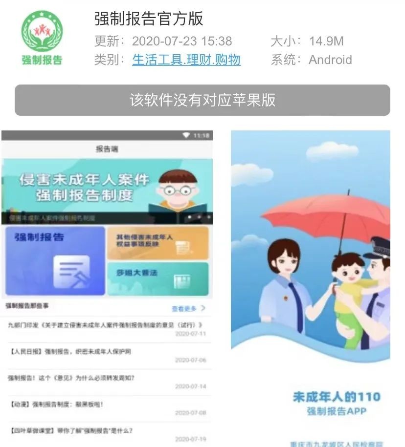 重庆市九龙坡区检察院检察六部主任何可在接受新华网采访时提到,全国首个强制报告制度 App 在重庆试运行的第一周内,下载量已达 2100 多人,在接到 16 起报告中,包含一起性侵未成年人案。