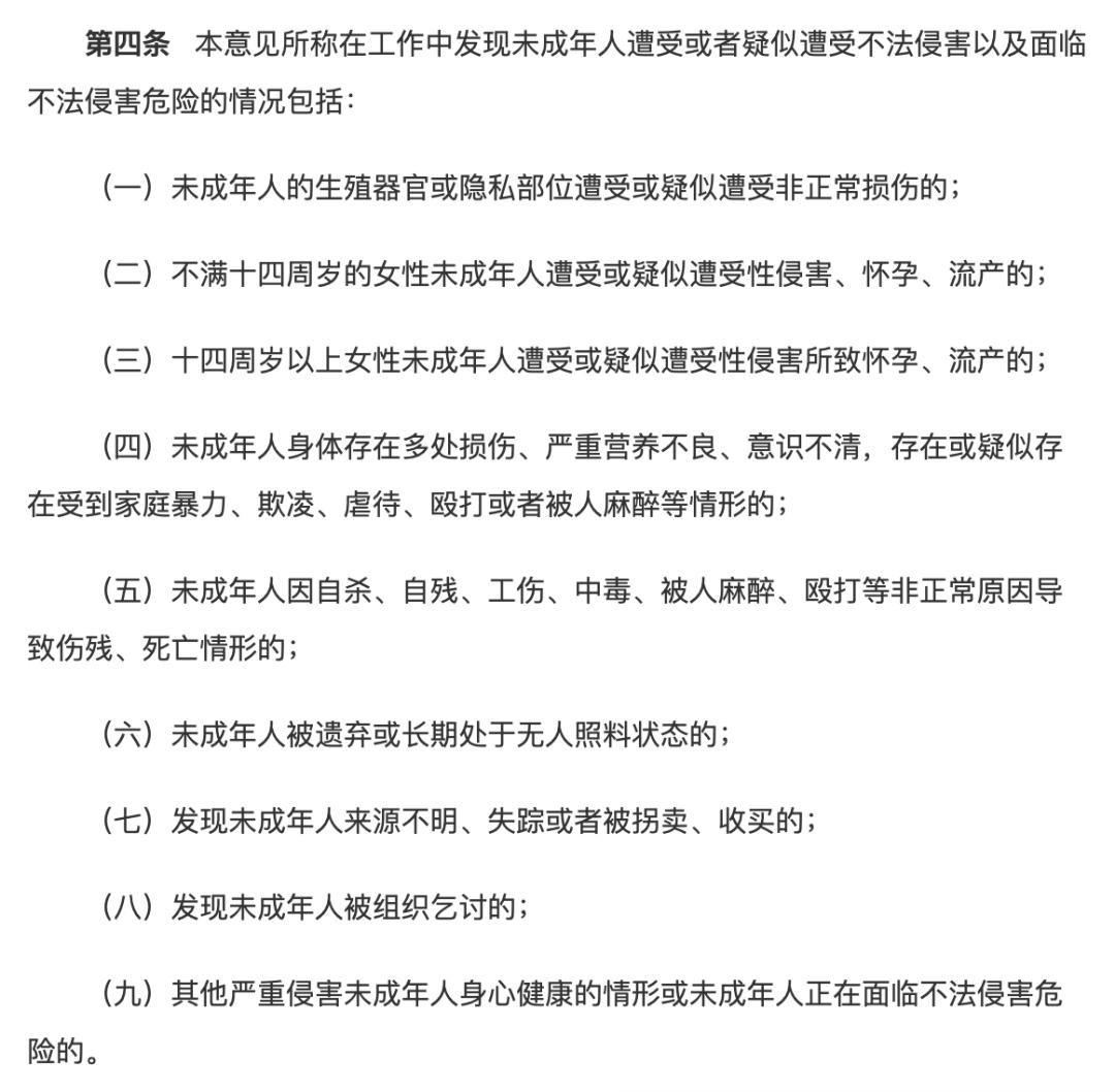 来源:《关于建立侵害未成年人案件强制报告制度的意见(试行)》