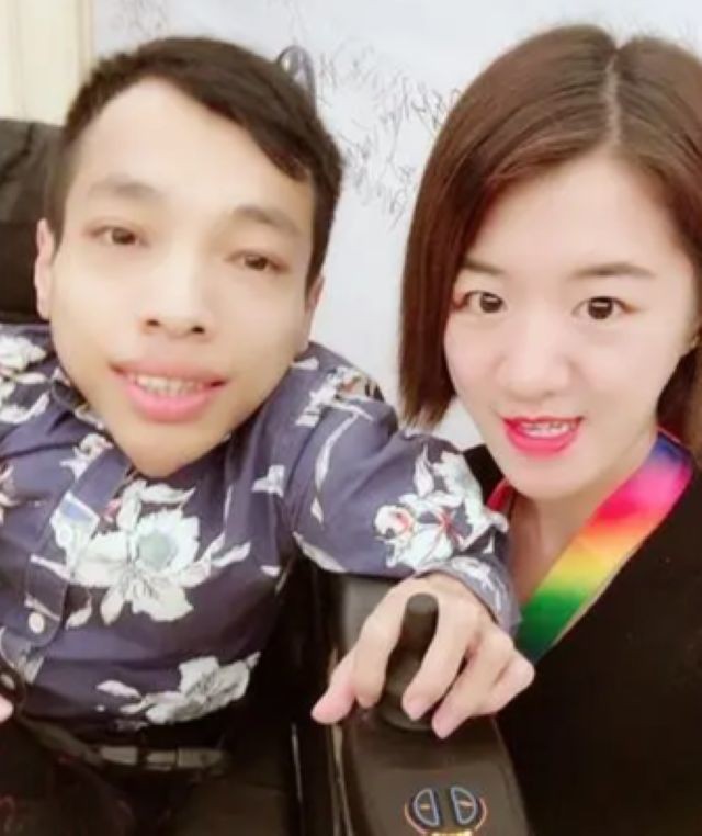 他们的婚礼盛大而感人,90厘米高的新郎坐在轮椅上,身旁是身高170厘米的美丽新娘,两人手牵手出现在宾客面前,形成了极具喜感的“最萌身高差”。