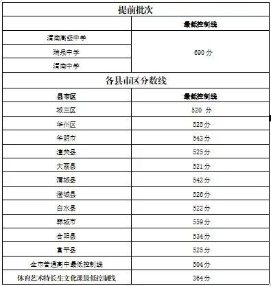 2022年7月17日12点整,渭南市教育局公布了2022年渭南市及各县高中录取最低控制线。