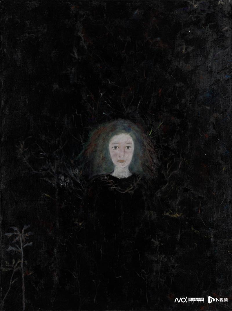 南都:从《奇异的树》《奇异的山》开始,你将女性的头发描绘为树的枝桠,这个形象一直延续到《根系色谱》,你加强了画中的女子的植物(树)的属性。这个意象和你的诗作有关么?为什么将树譬喻为女性?