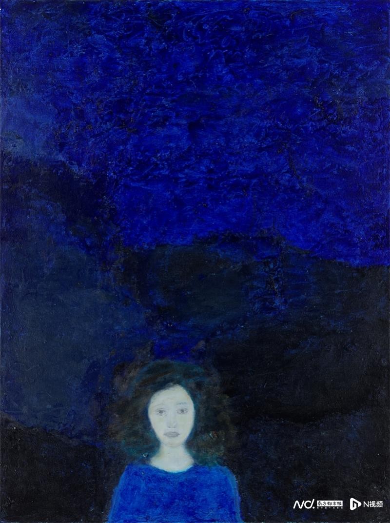 翟永明:我的创作没有模特。我刚开始画的时候还是想要画一些认识的人。后来我发现没有经过专业训练,要想把一个人画像是很难的,特别不容易,但是无中生有画一个人还比较容易一点。可能因为这幅画叫《蓝》,所以你觉得有点像。