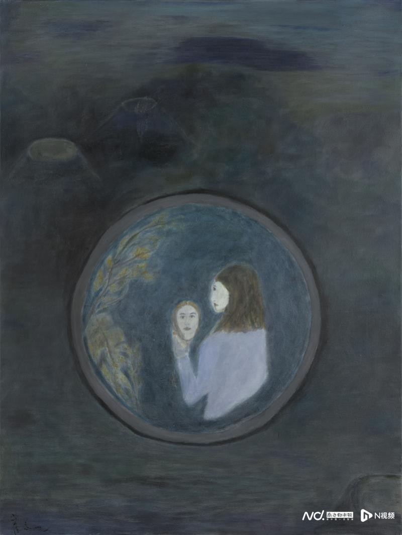 翟永明从年轻时起就与中国当代艺术圈过从甚密。她熟谙中国水墨画传统,写过以观摩《富春山居图》为灵感的长诗《随黄公望游富春山》。她的画作中,无意识地贯通着黄公望、倪瓒等一脉文人画浑厚华滋、疏淡条畅、简拙素朴的气韵。烟岚霭霭,远山青翠可喜,让人想起稼轩词“我见青山多妩媚,愿青山见我亦如是”。另一方面,她又有着超现实的奇崛想象,女人头上长出树枝、鸟巢和鸟,连接着无边的自然、泥土和黑夜;有时又是黑夜里浮出一张花瓣般莹白的脸。在一组名为《水上水下》的作品里,女子整个地浸在水面以下,在透明的包裹中,她无法挣脱,不能呼吸,却仍面带神秘笑容,就像普拉斯的玻璃钟形罩一样,是当代女性生存境况的绝佳隐喻。