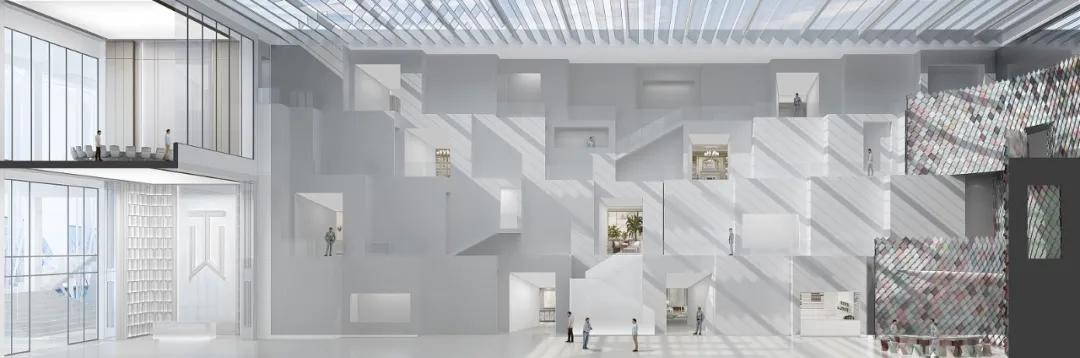 图森新展厅位于图森厂区的邻街位置,总用地面积11000平方,建筑面积9800平方,为二层混钢结构建筑。展厅将企业LOGO作为设计元素的母题,以简约、纯粹、时尚、直接的建筑艺术语言强化图森木业企业形象。新展厅预计2021年投入使用。